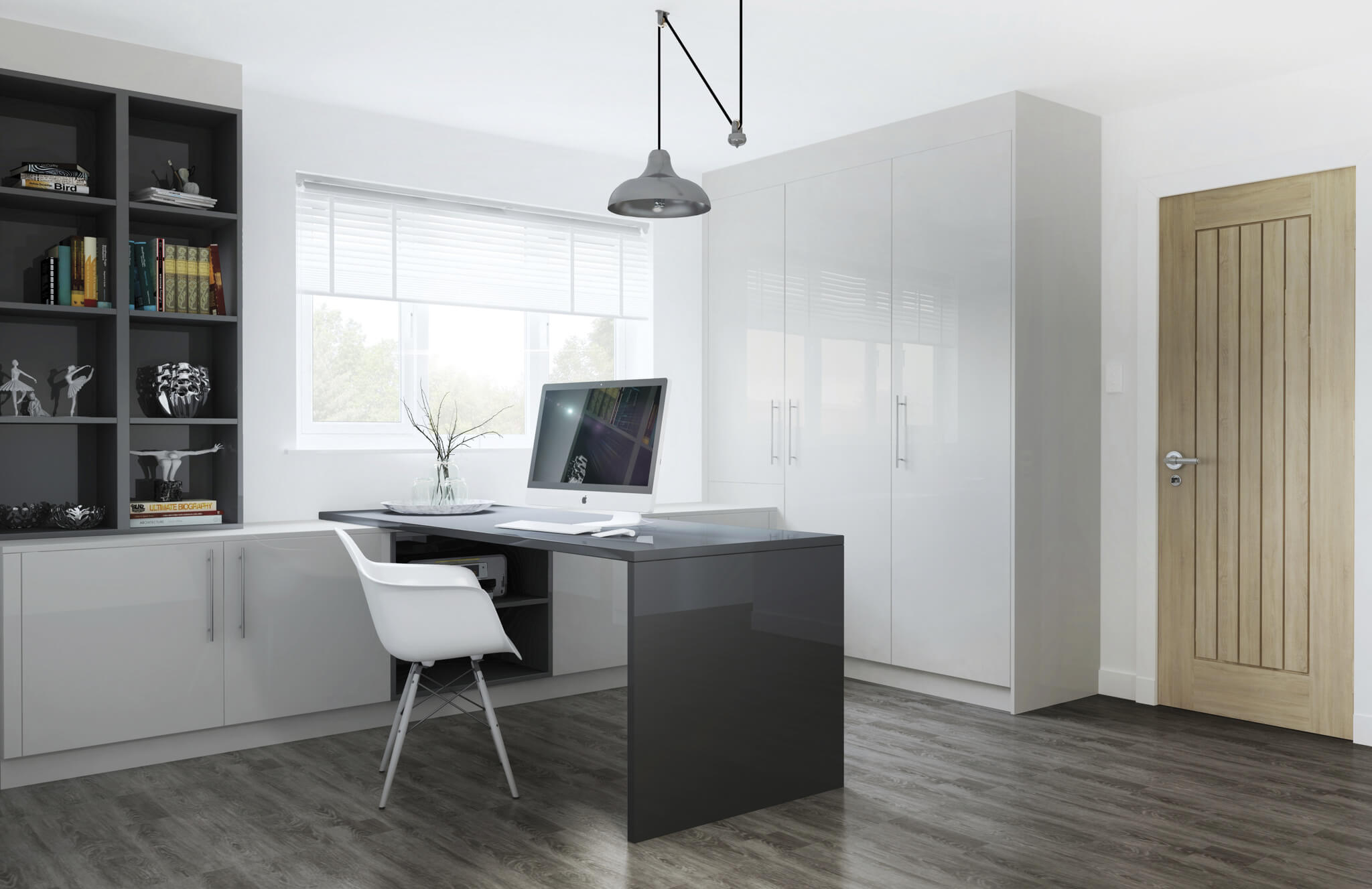 You can choose the style of your new fittings from our beautiful Bella, Valore or Zurfiz ranges, available in an extensive choice of colours. Complete the look with your choice of handles and knobs. Talk to our designer about incorporating features like mirrors and lighting into your completed project.