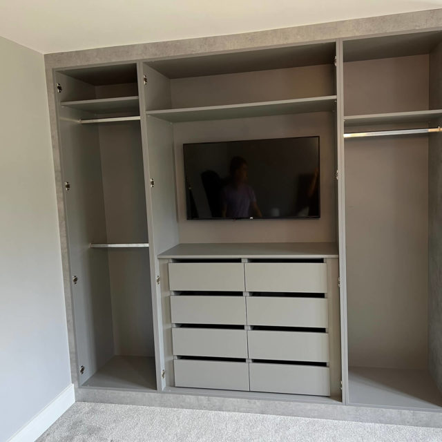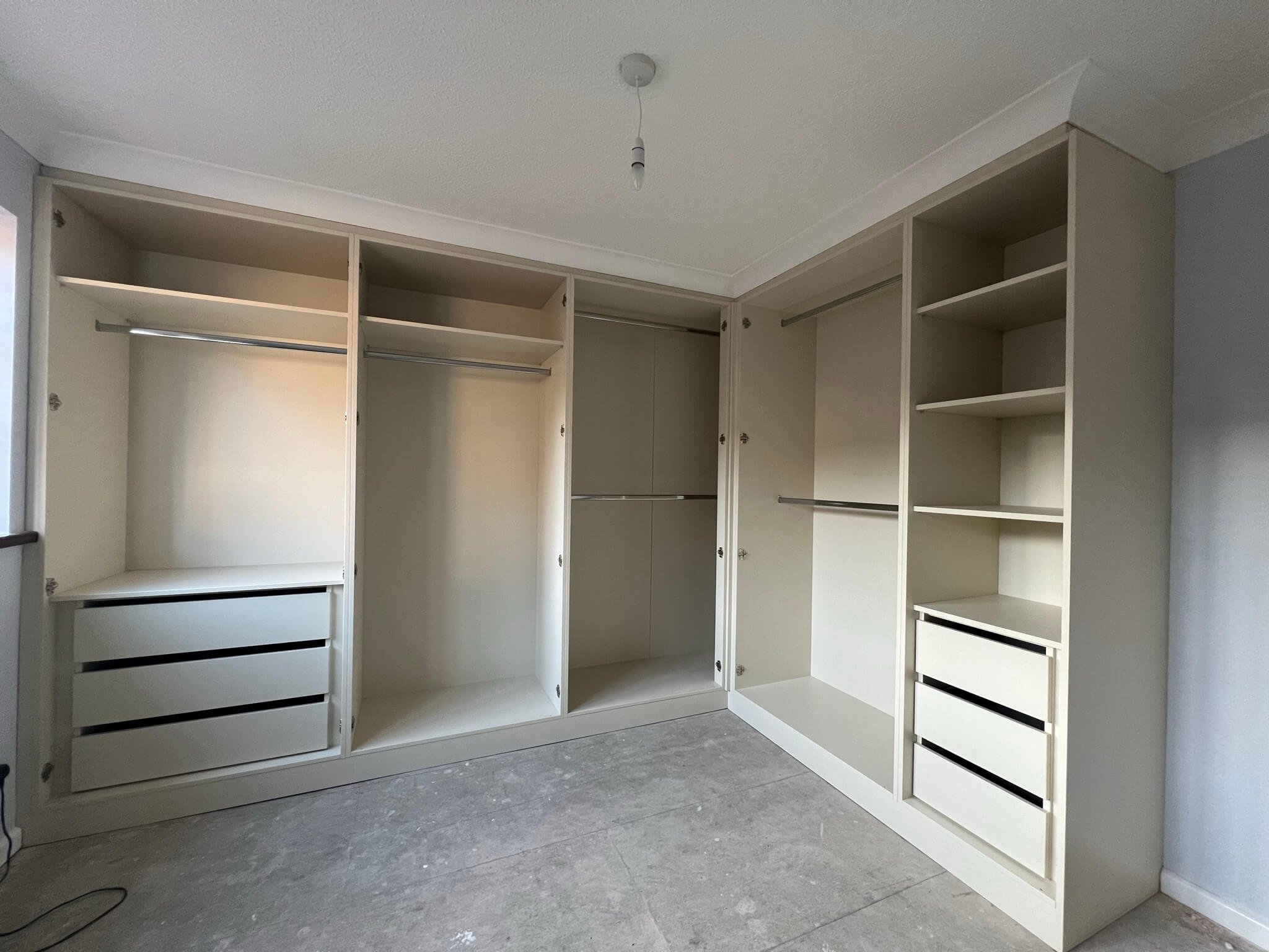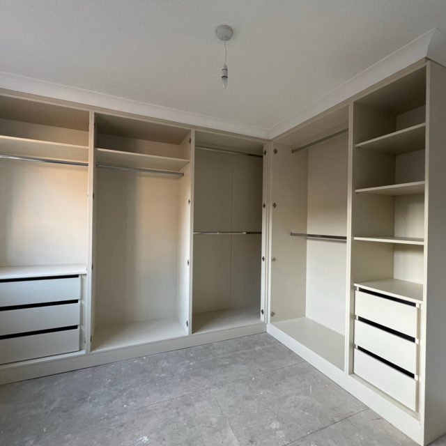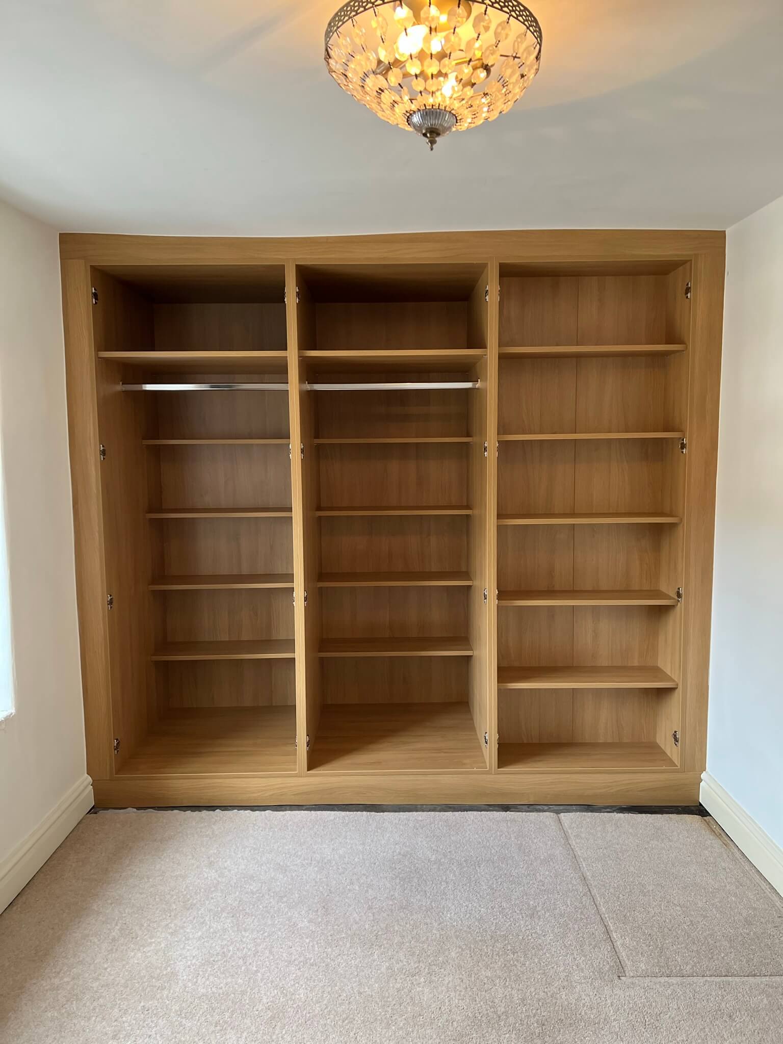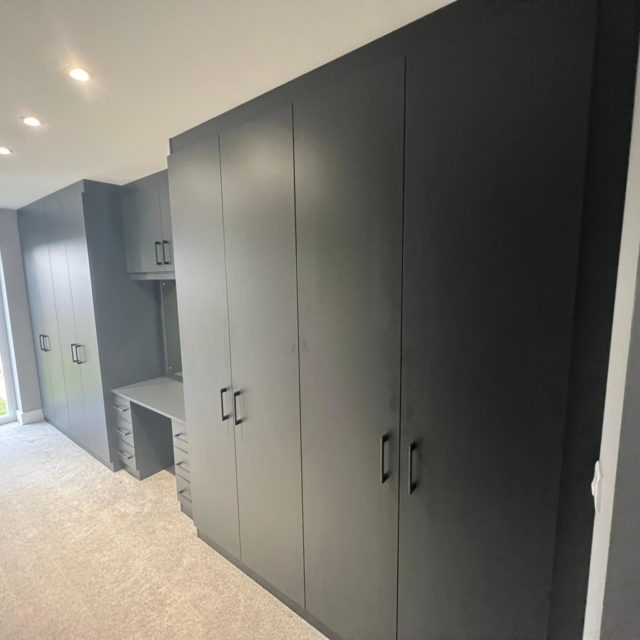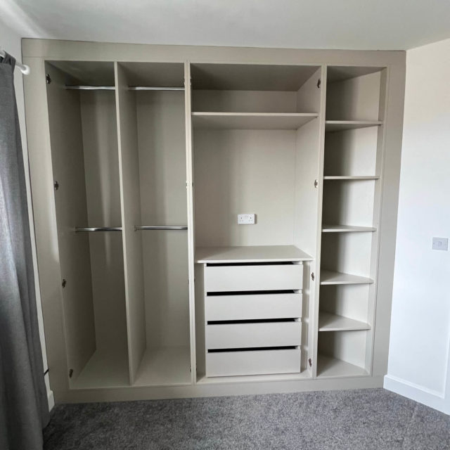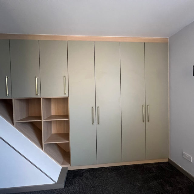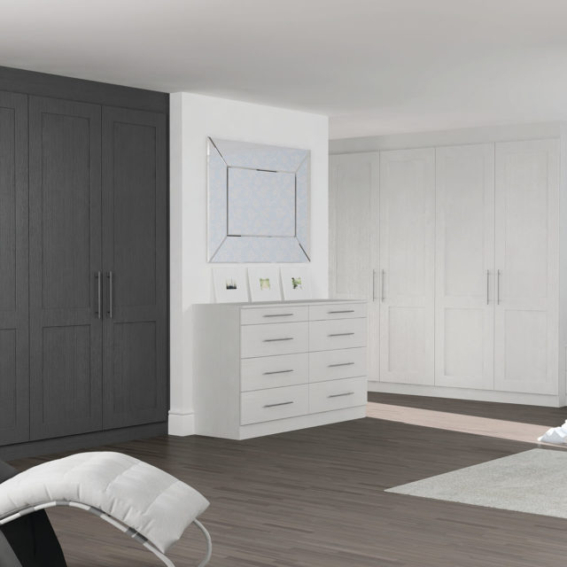 Our designer will measure your space and work with you to draw up a detailed plan for the size and shape of fitted wardrobes, cupboards and bedside cabinets you’d like in your room.