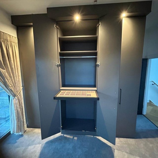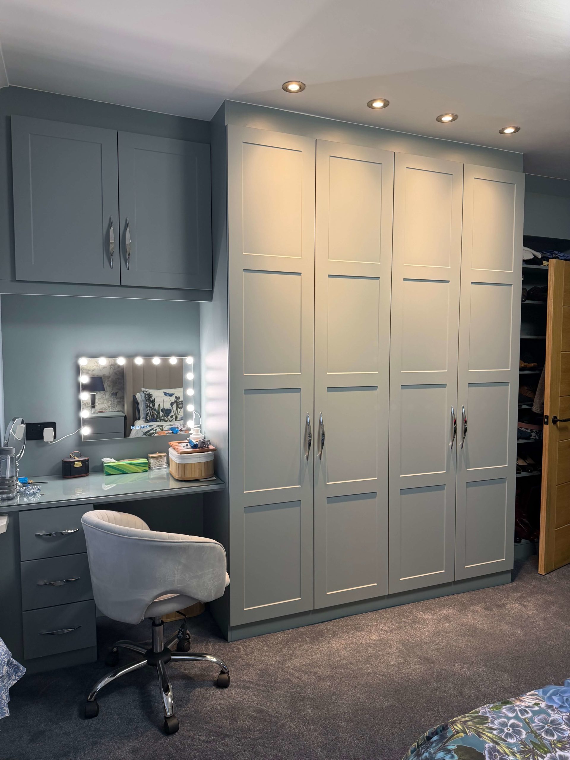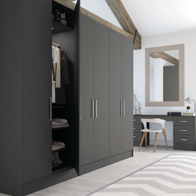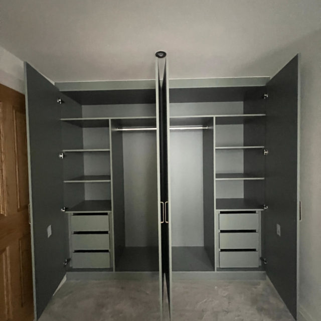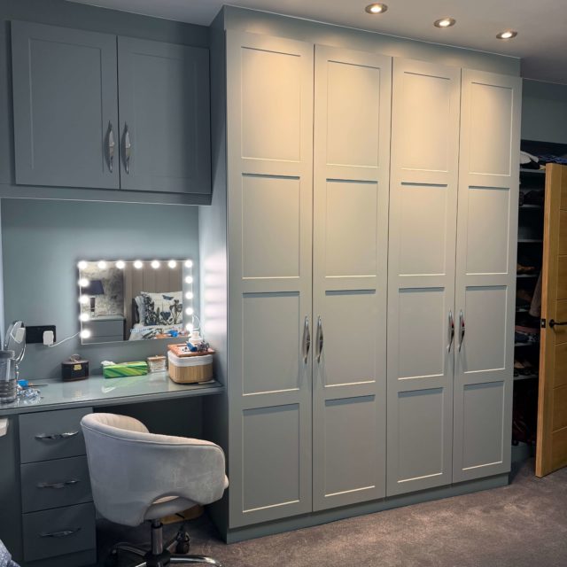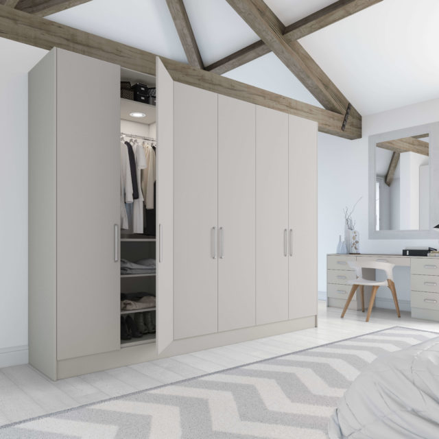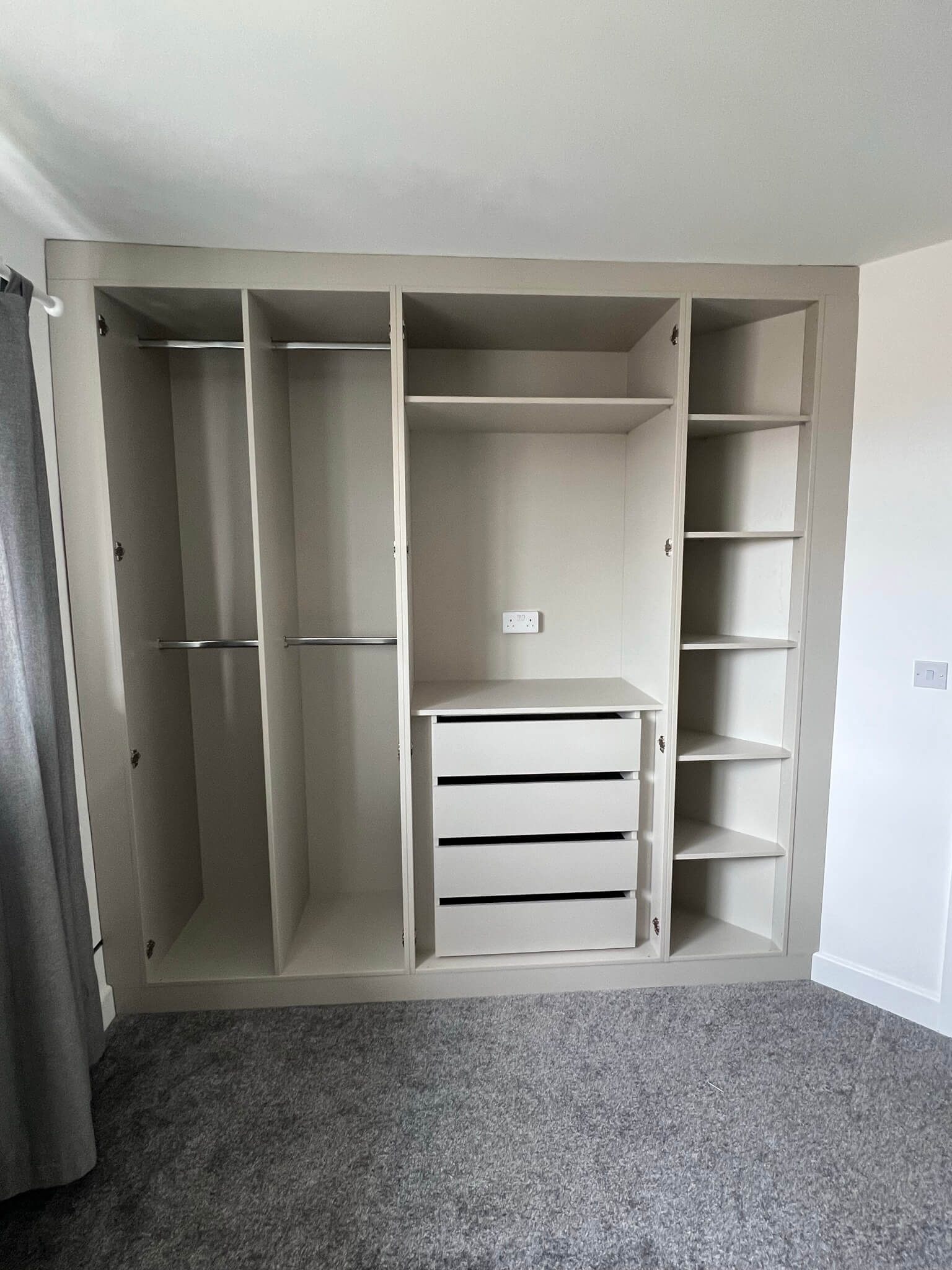 Our designer will measure your space and work with you to draw up a detailed plan for the size and shape of fitted wardrobes, cupboards and bedside cabinets you’d like in your room.