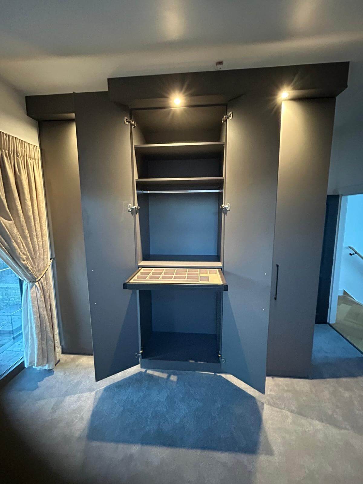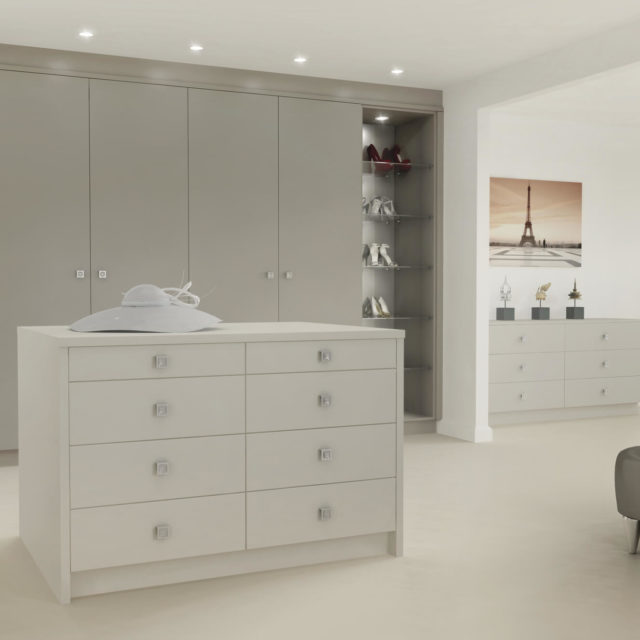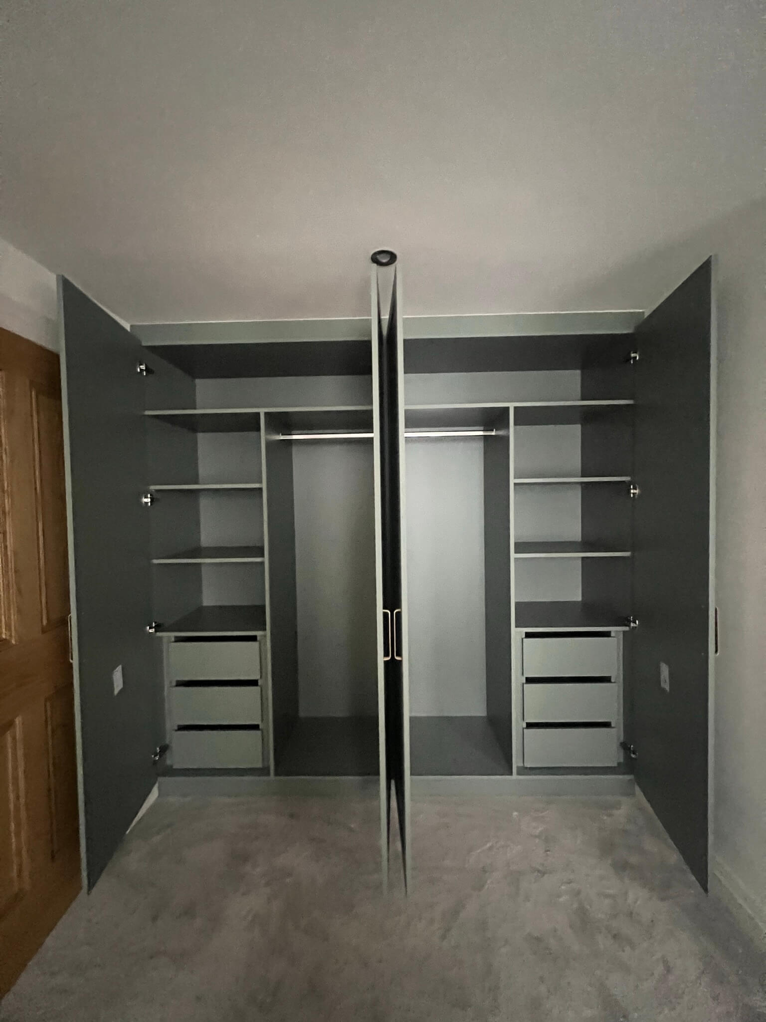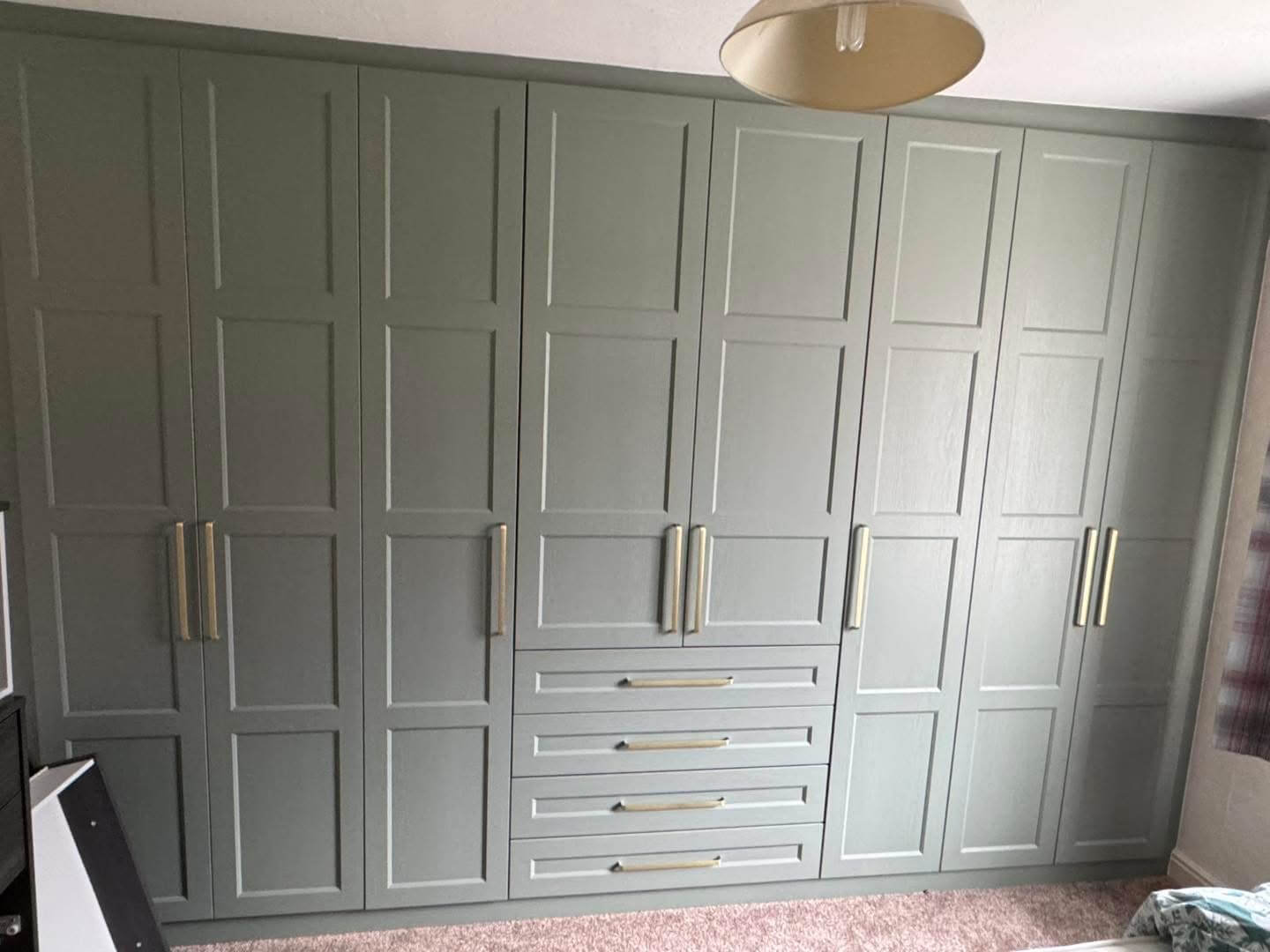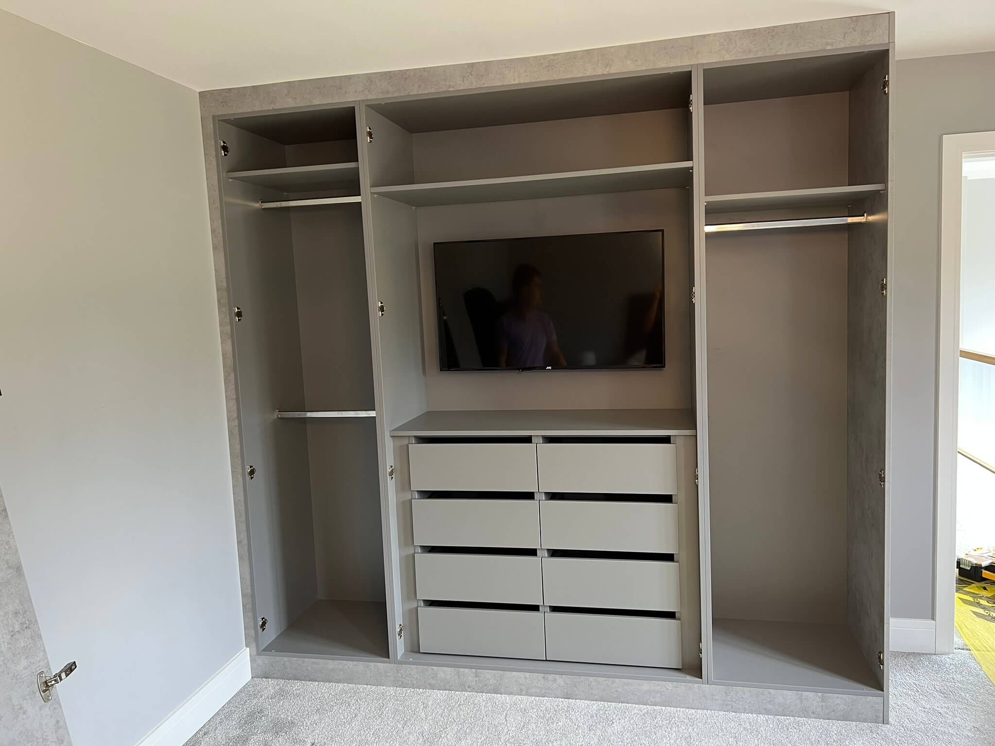 Our designer will measure your space and work with you to draw up a detailed plan for the size and shape of fitted wardrobes, cupboards and bedside cabinets you’d like in your room.