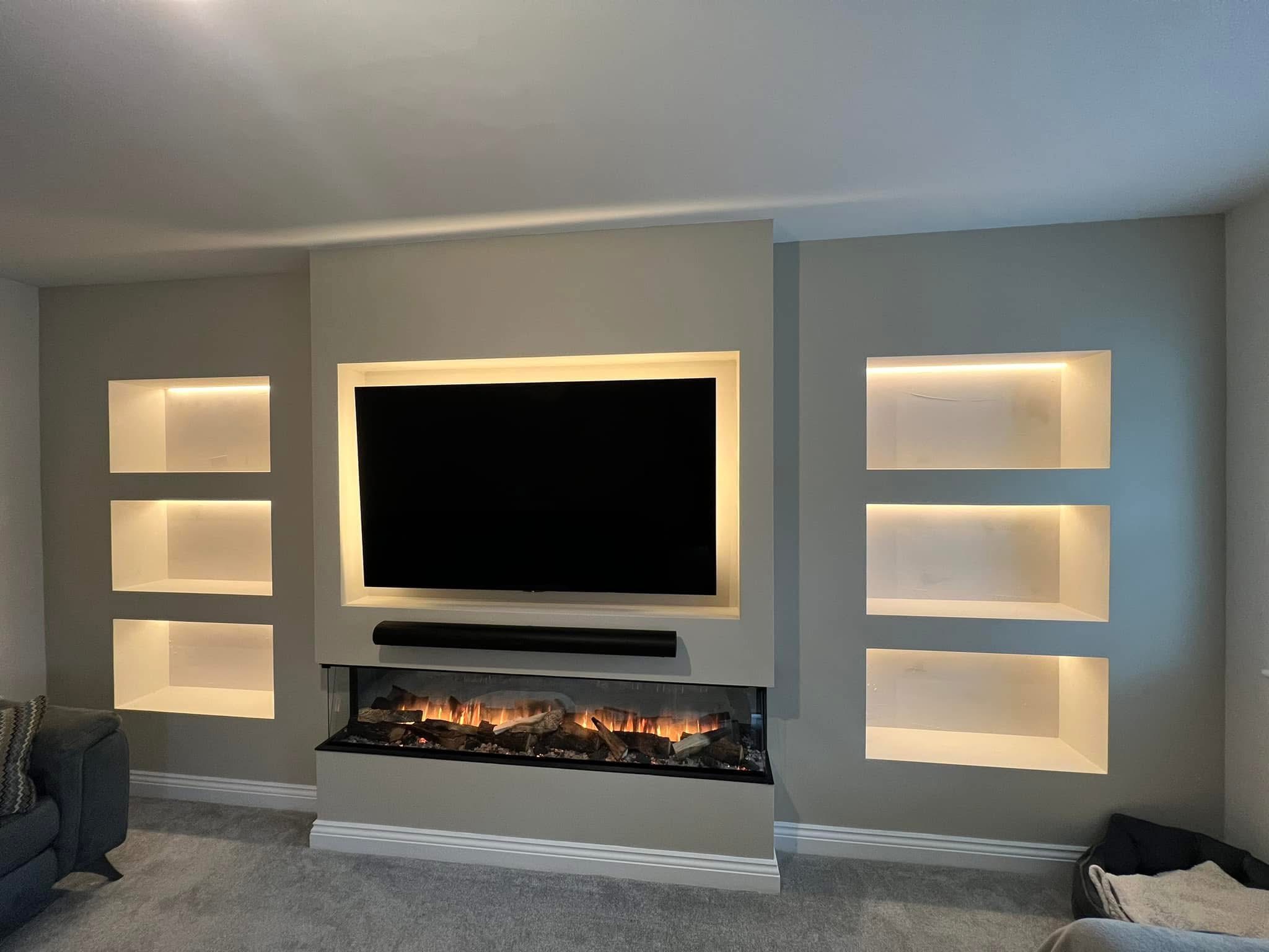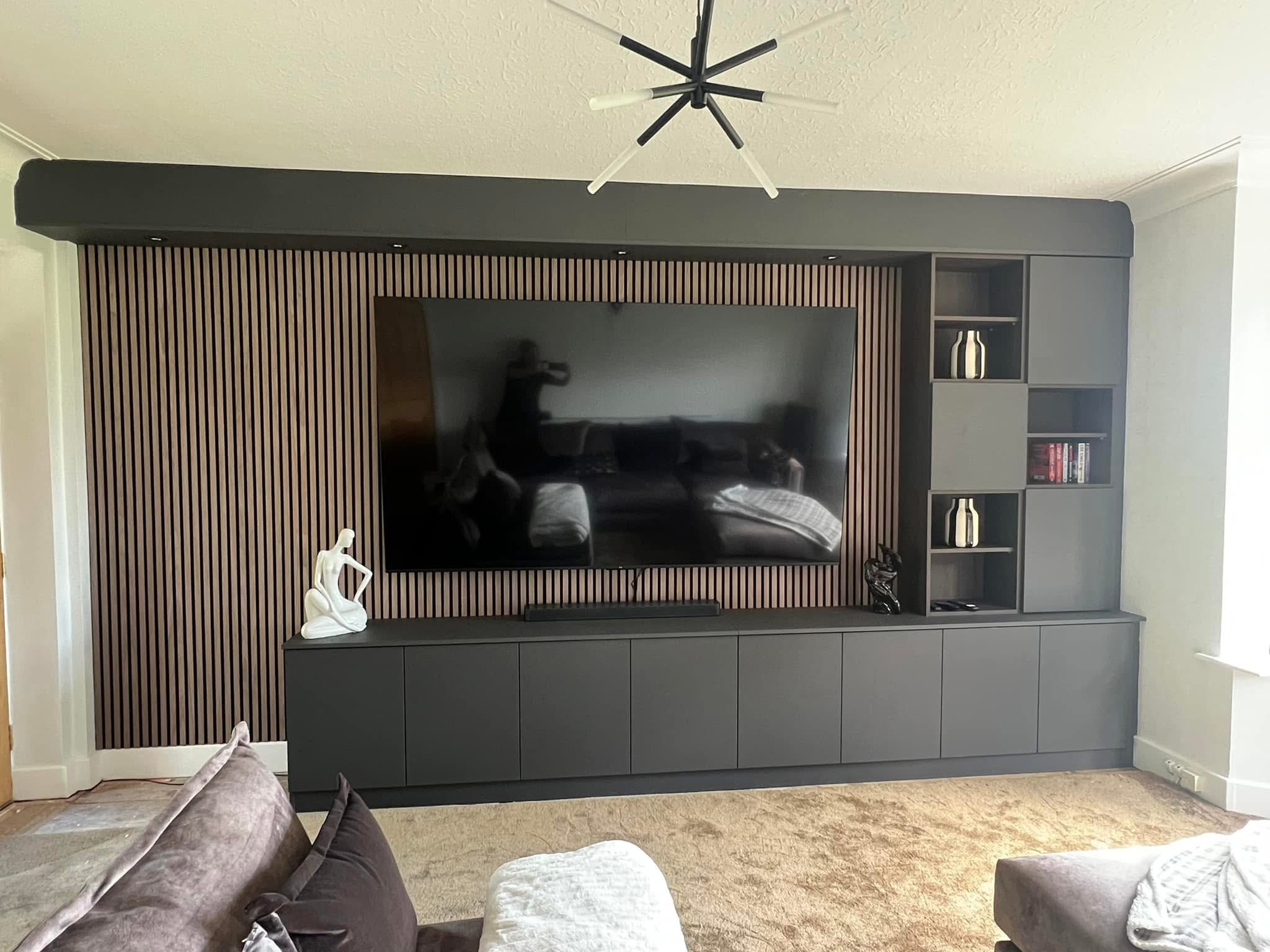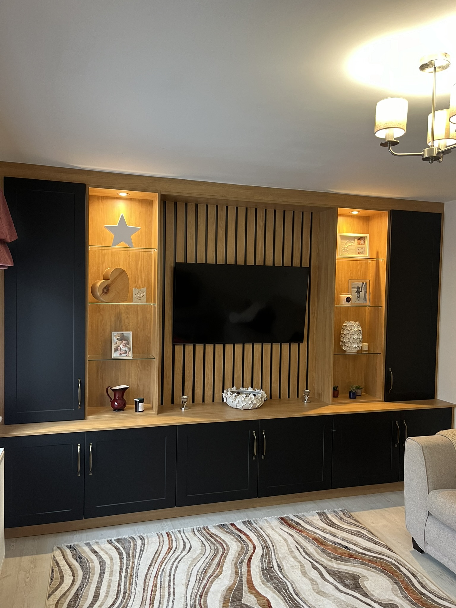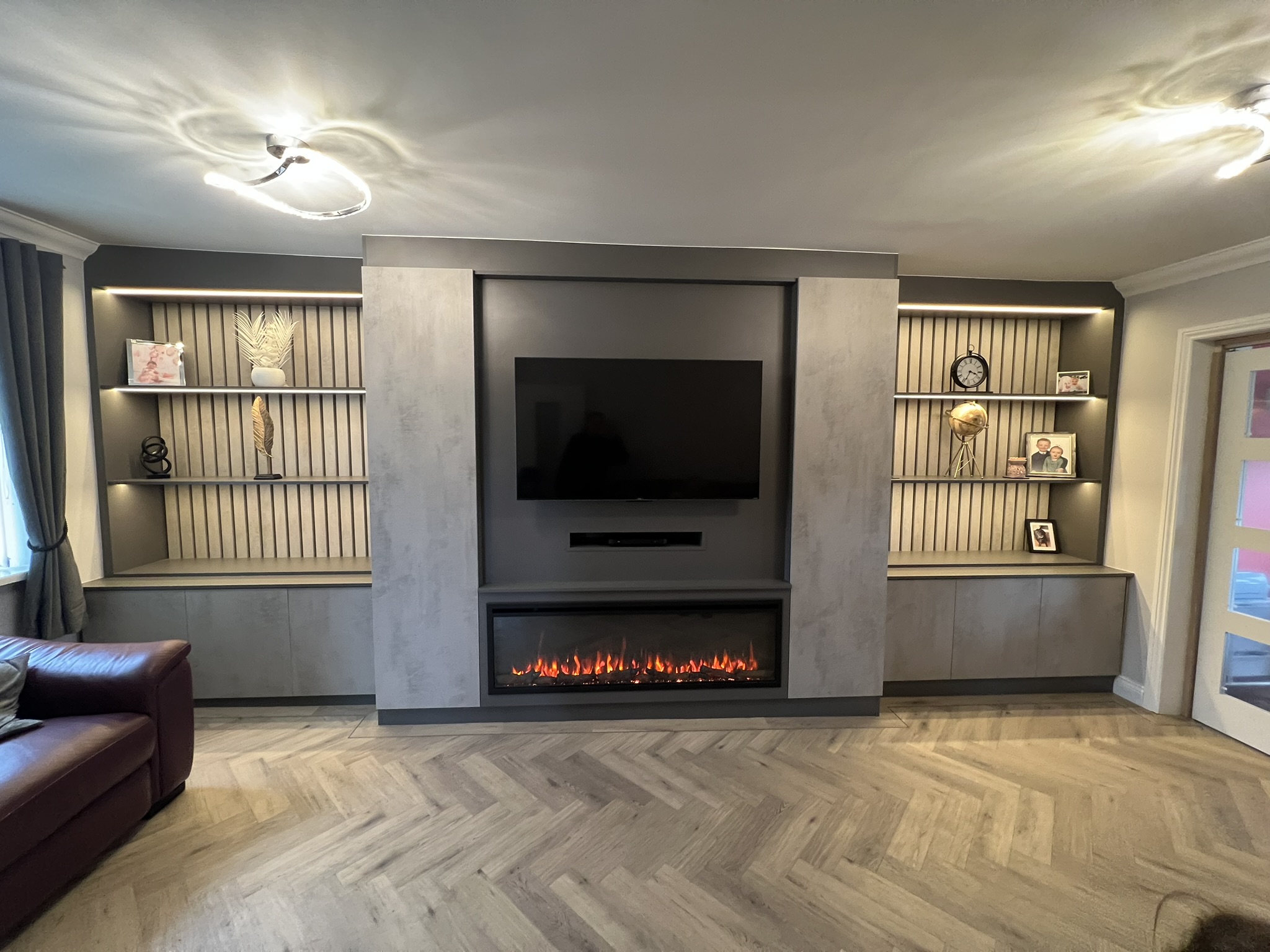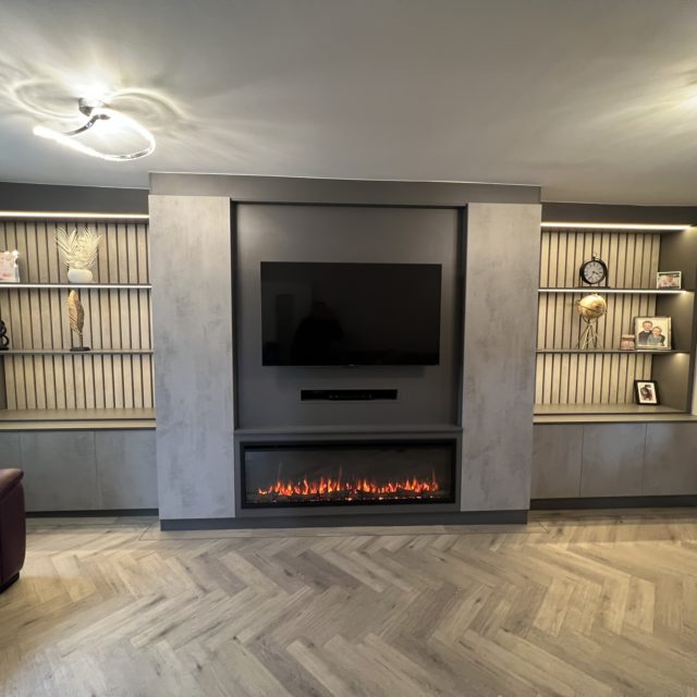 A media wall is more than just a place to put your TV – it’s a stylish, modern feature that brings together your screen, sound system, shelving, and even a cosy fireplace, all in one seamless design. Built to fit your space and lifestyle, a media wall creates a focal point in your room that’s both practical and stunning, giving you the perfect spot for movie nights, gaming, or simply relaxing in style.