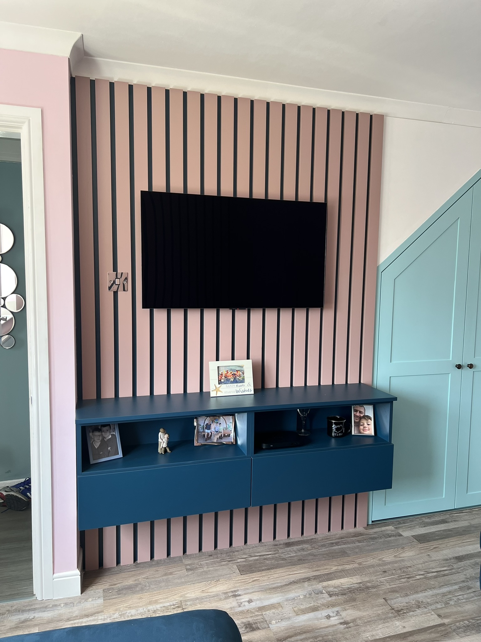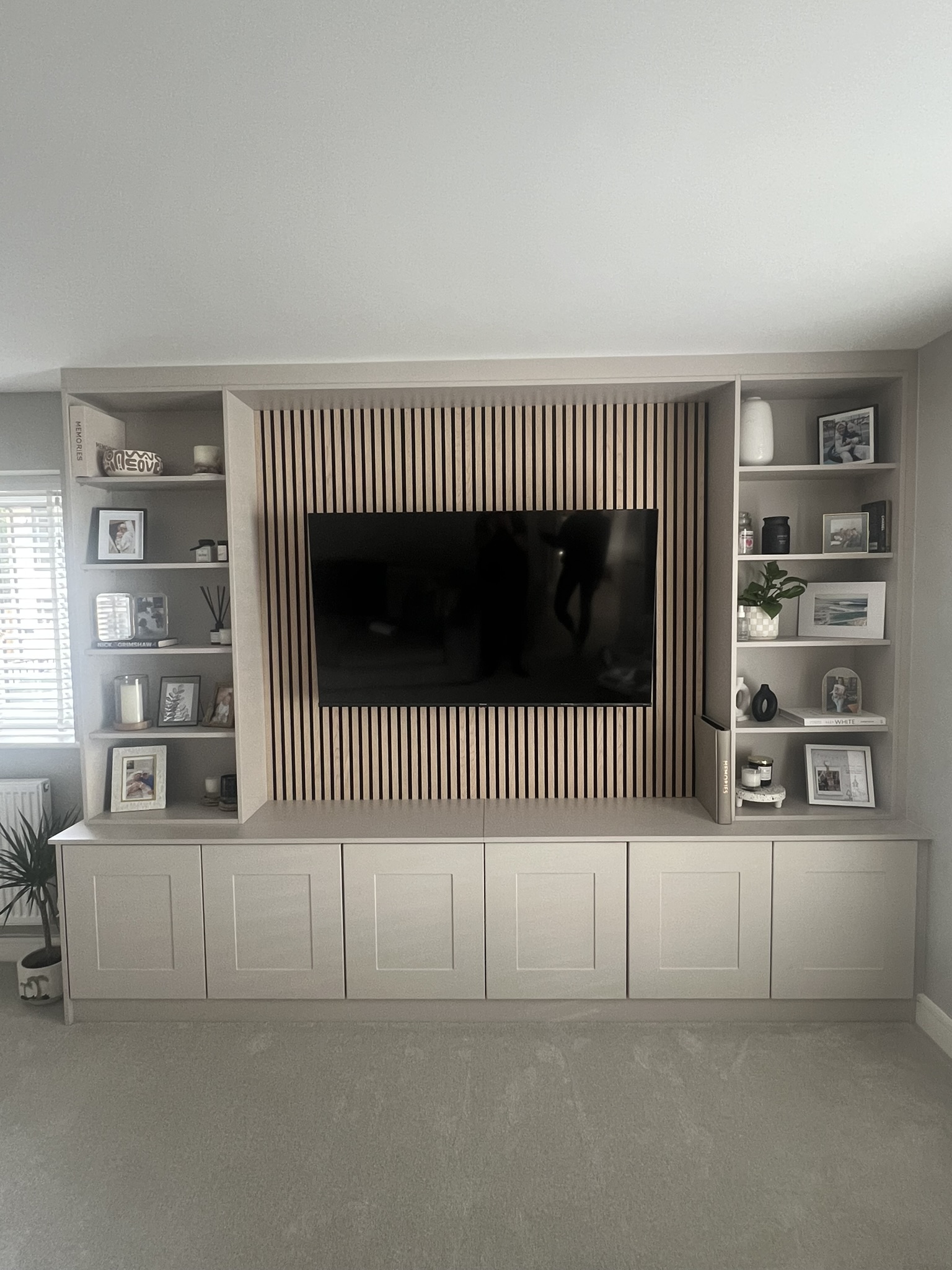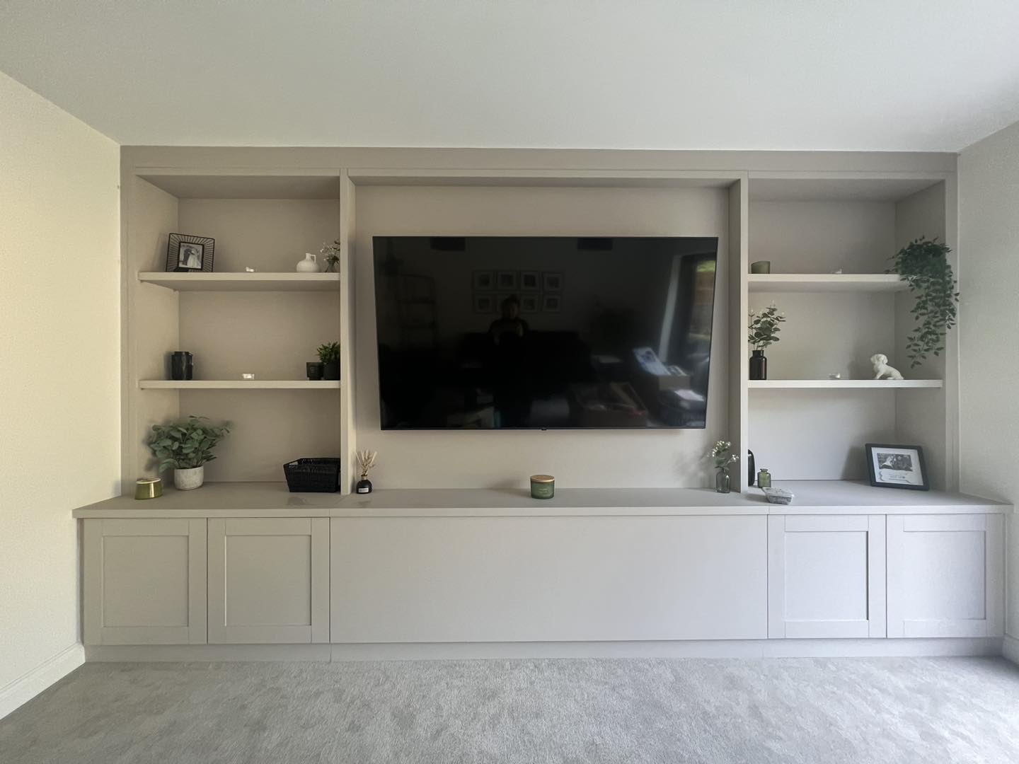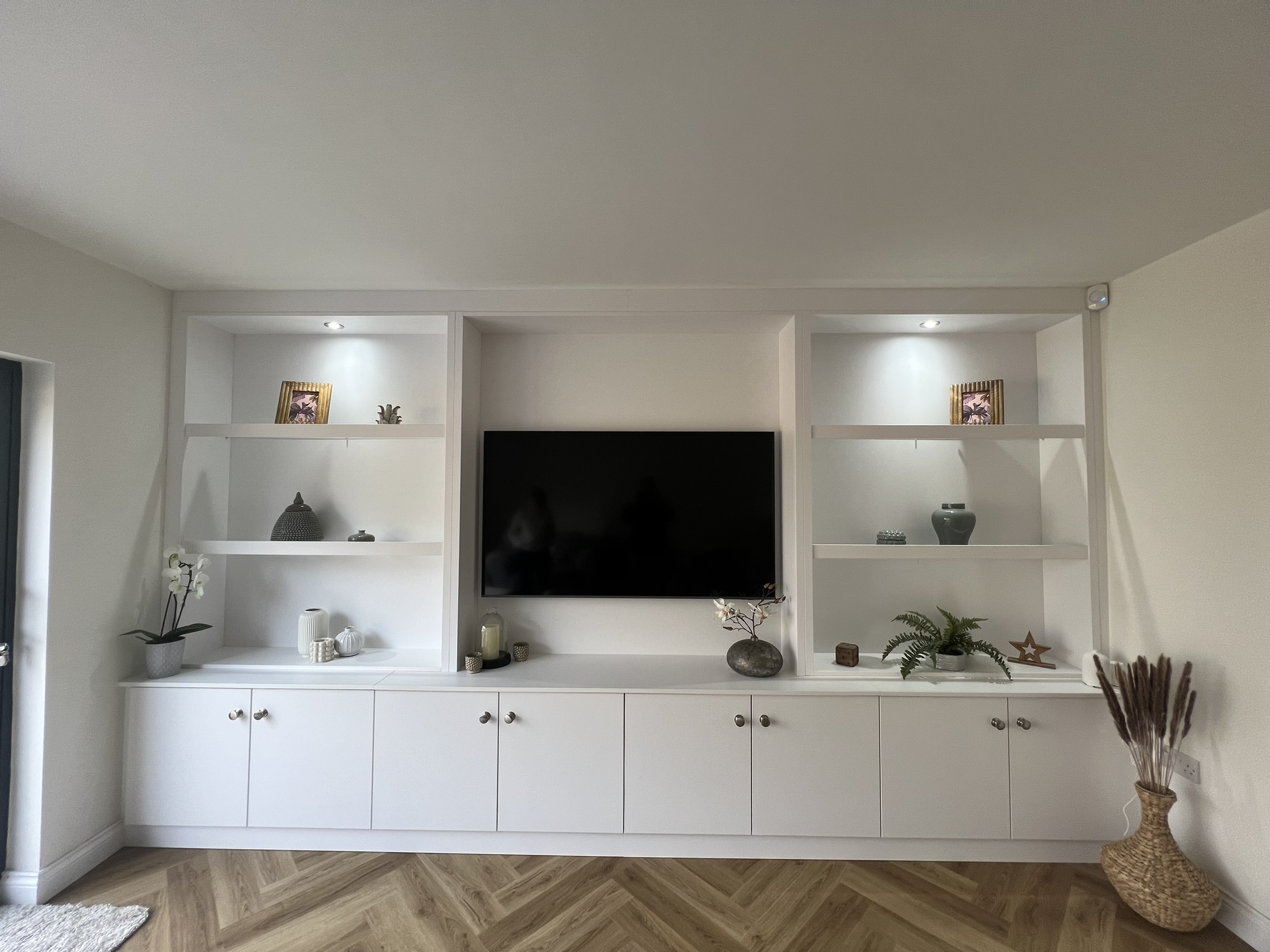 A media wall is more than just a place to put your TV – it’s a stylish, modern feature that brings together your screen, sound system, shelving, and even a cosy fireplace, all in one seamless design. Built to fit your space and lifestyle, a media wall creates a focal point in your room that’s both practical and stunning, giving you the perfect spot for movie nights, gaming, or simply relaxing in style.
